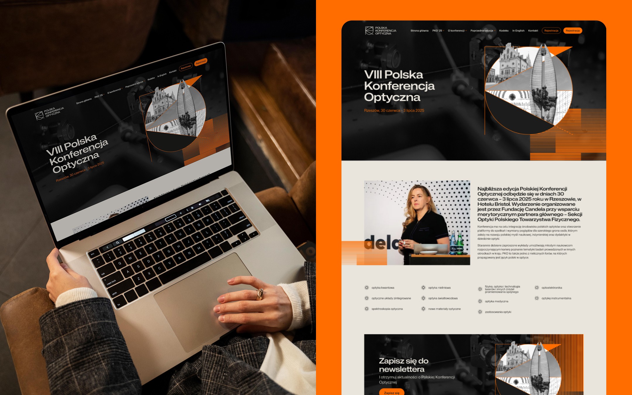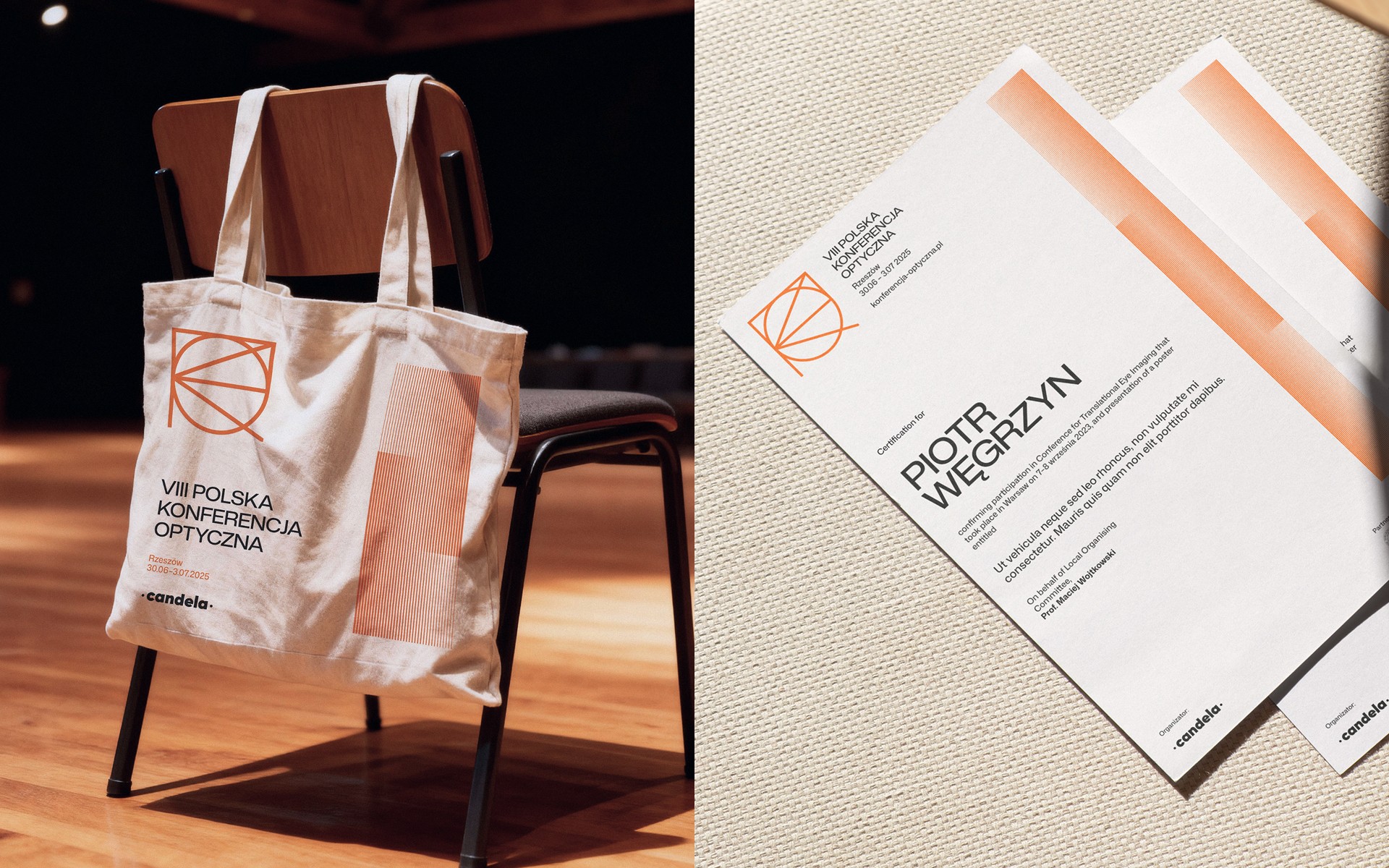 Identyfikacja dla VIII Polskiej Konferencji Optycznej łączy naukową precyzję z wyrazistą formą i dbałością o ciągłość wizualną. System podkreśla charakter wydarzenia, wyróżnia je na tle innych konferencji branżowych i zapewnia narzędzia, które realnie wspierają organizatorów w codziennej komunikacji.